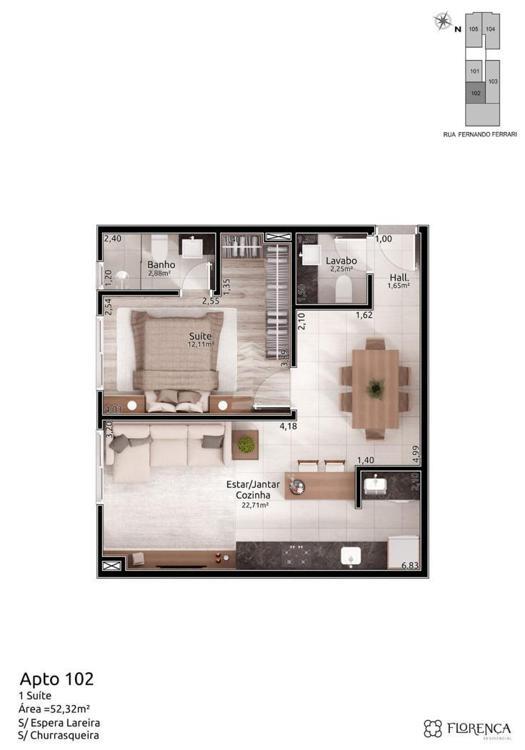 • Área Total Privativa:52,32 m²