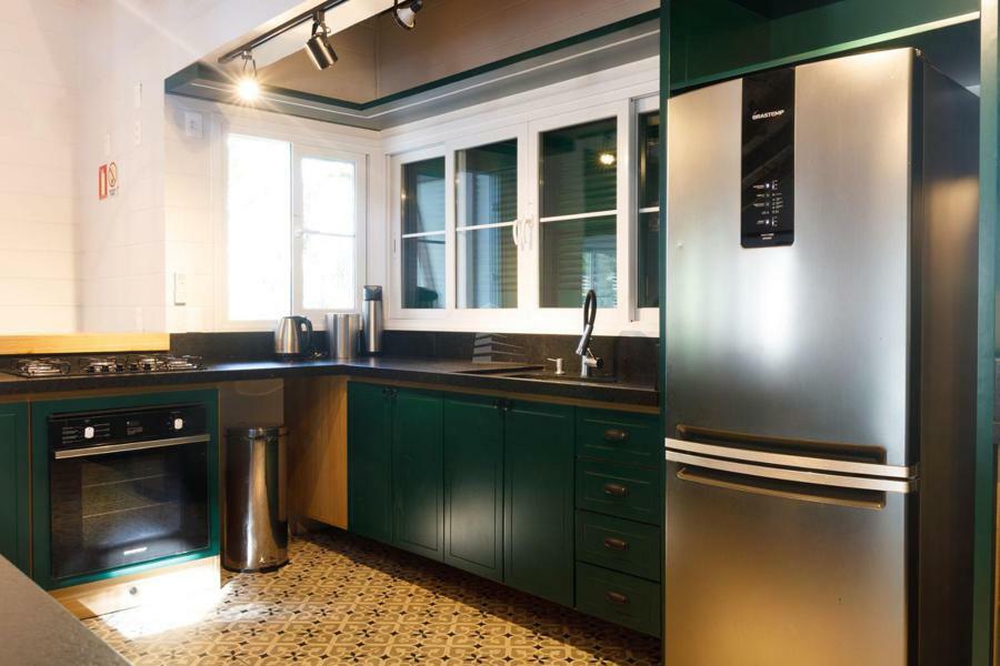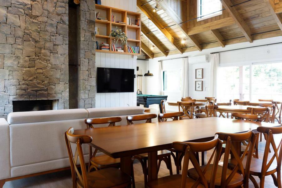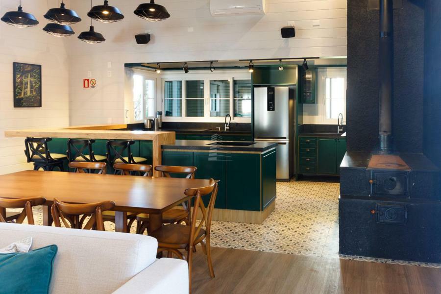 Condomínio com área social preservada em uma casa histórica com espaço gourmet, fitness, espaço kids e jogos, estar com lareira.