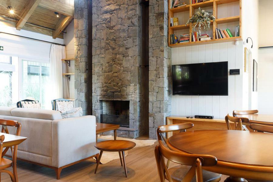 Composto por 01 suíte, lavabo, sala de jantar, living com lareira e sacada integrada, cozinha com churrasqueira, área de serviço e 01 vaga de garagem. Esquadrias em PVC com vidros duplos, acabamentos de alto padrão, espera para split, calefação e automação. Rebaixo de gesso, fechadura eletrônica digital, piso vinílico e porcelanato nas áreas úmidas.