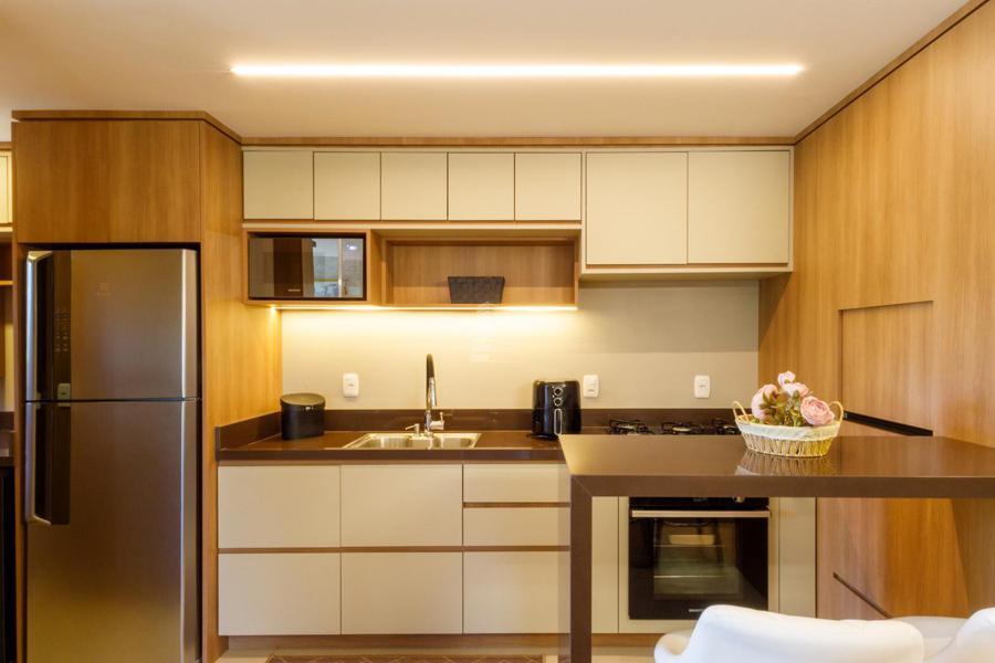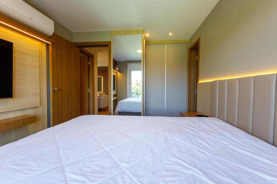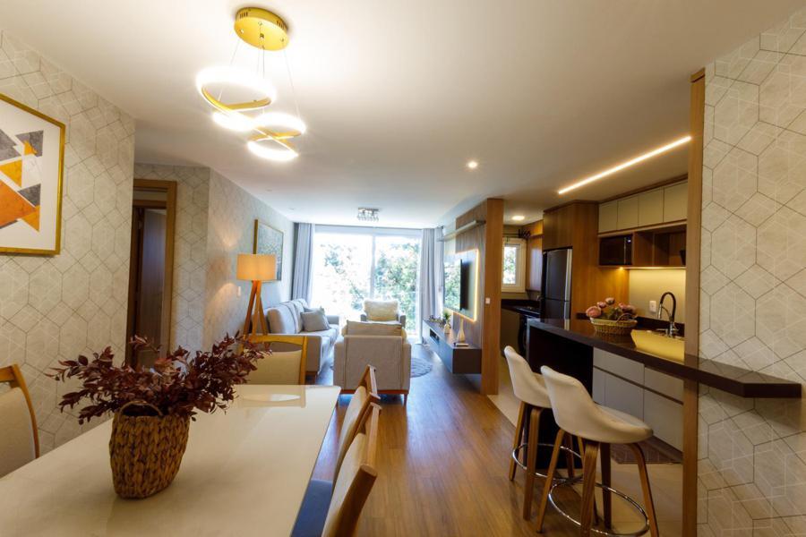 O apartamento conta com duas suítes espaçosas, proporcionando privacidade e bem-estar. A área social é composta por uma sala de estar acolhedora com lareira, perfeita para os dias mais frios da Serra Gaúcha, além de uma sala de jantar e uma cozinha moderna e bem equipada.