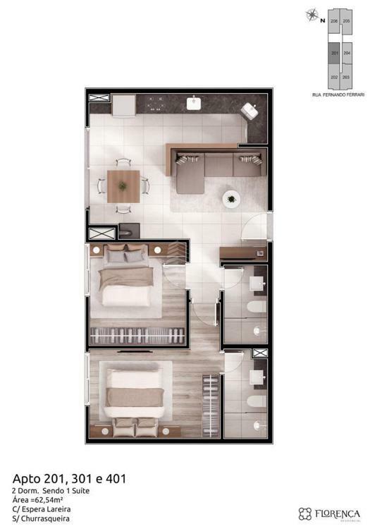 • Área Total Privativa:62,54 m²