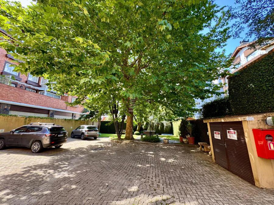 Varanda fechada com vista incrível para o jardim do condomínio, proporcionando momentos únicos de contemplação e relaxamento.
