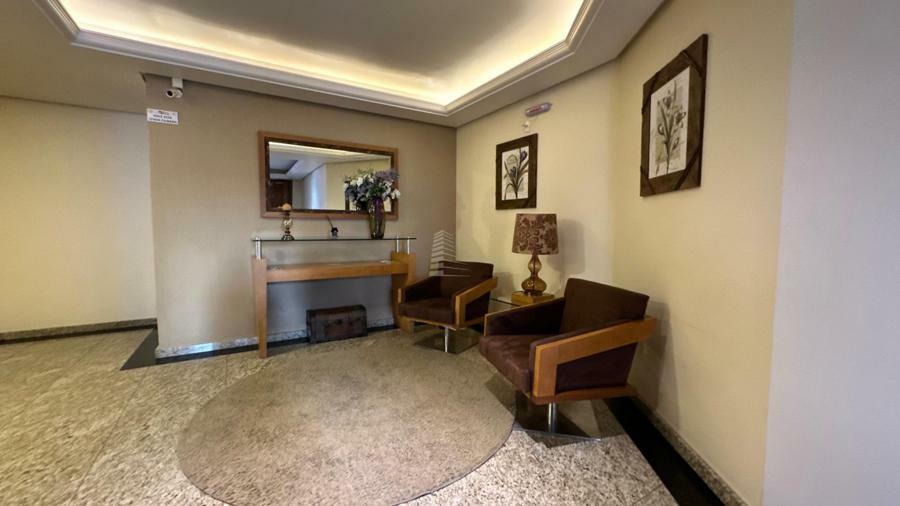 Com dois dormitórios, sendo uma suíte, conta ainda com banheiro social completo, cozinha montada, sala de jantar e uma ampla sala de estar com sacada em “L”, proporcionando uma vista privilegiada para a principal avenida da cidade. A orientação solar Leste/Norte garante ambientes bem iluminados e ventilados ao longo do dia.