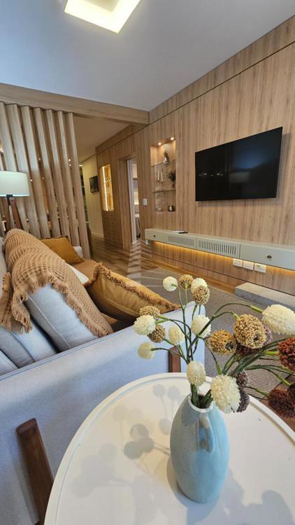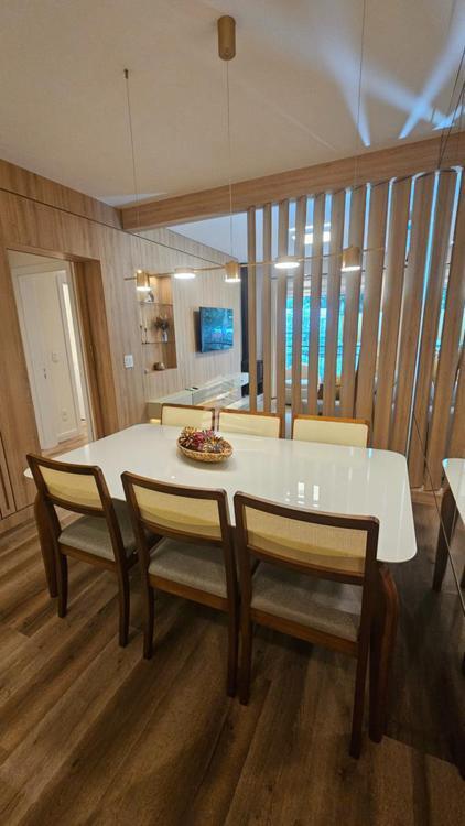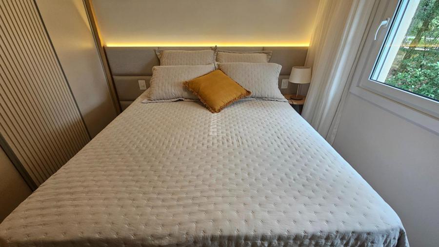 O acabamento em gesso e o piso em porcelanato trazem um toque de elegância, enquanto a infraestrutura para água quente, ar condicionado instalado, internet e hidrômetro individual garantem praticidade no dia a dia. O apartamento possui ainda churrasqueira na sacada, sala de estar e jantar integradas, banheiro social, despensa e um projeto que valoriza cada espaço.