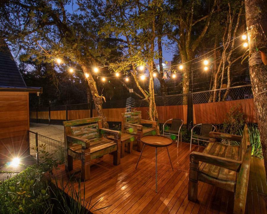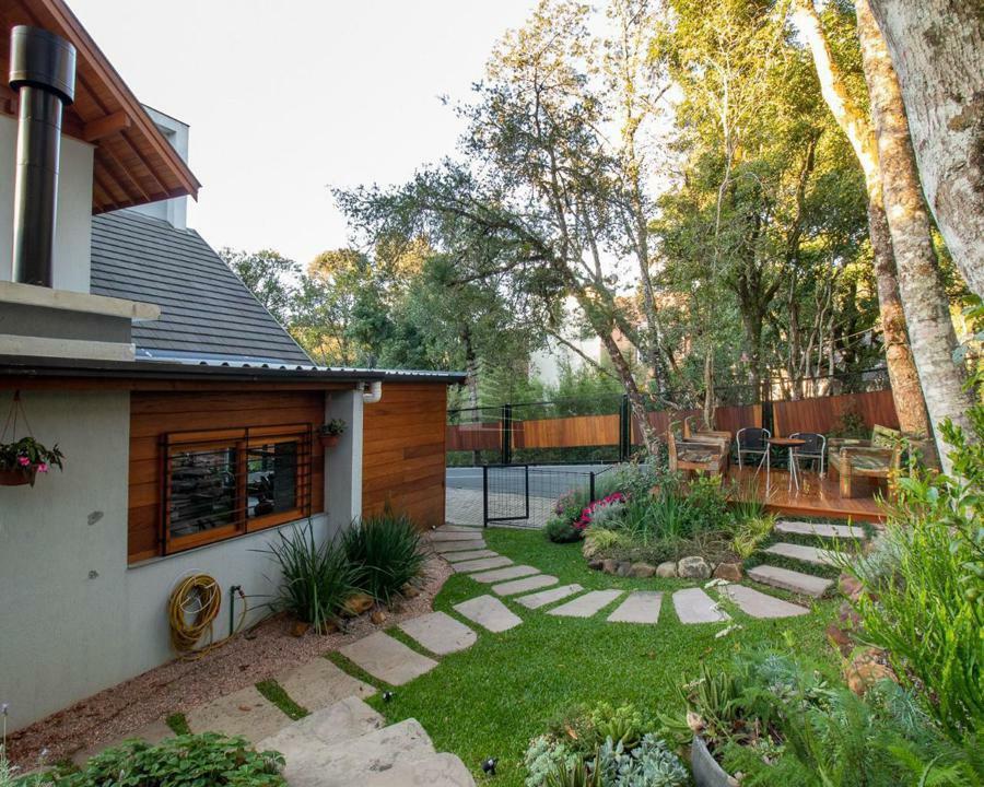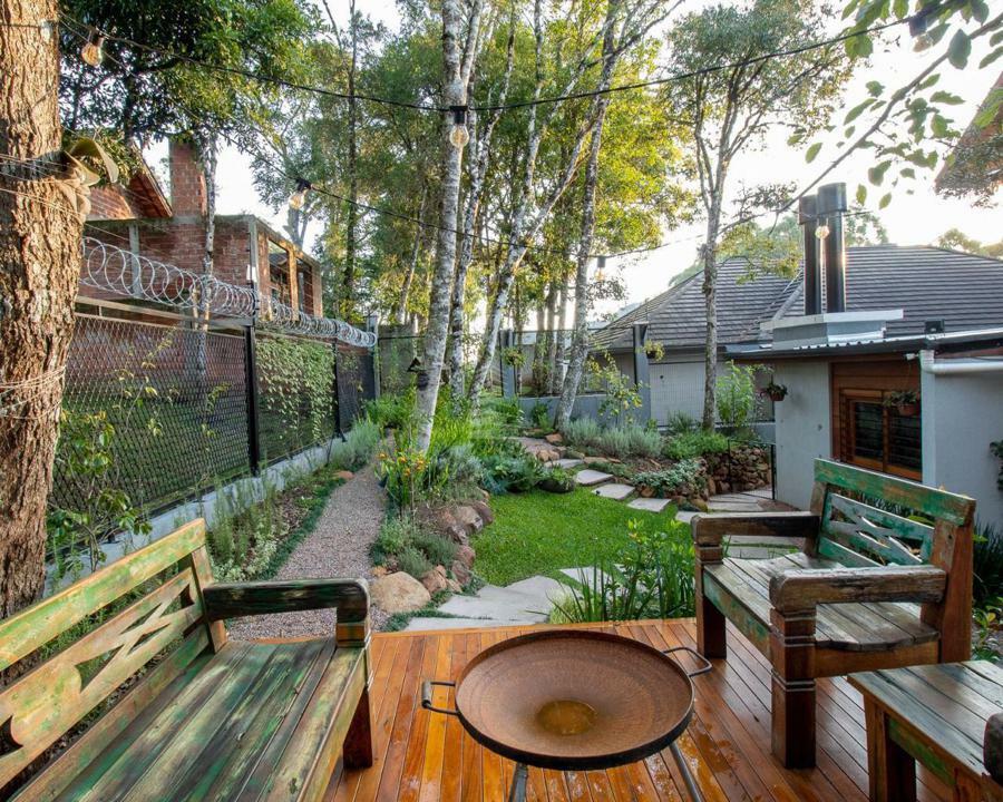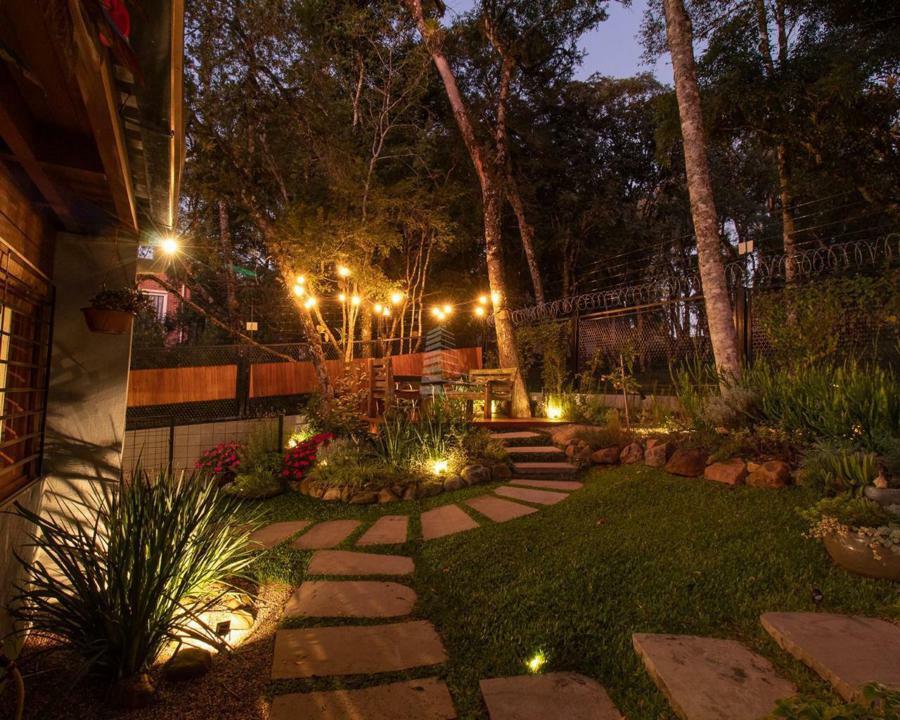 Exterior: Ao chegar, você é recebido por um belo pátio, rodeado por jardins bem cuidados que emolduram a entrada principal. O espaço externo é perfeito para momentos de lazer, com áreas para estar e contemplação da natureza exuberante ao redor.