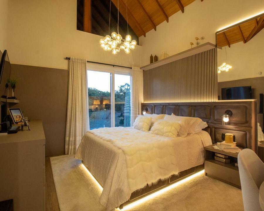 Subindo para o segundo andar, você encontrará duas suítes requintadas, cada uma com varanda privativa e vistas deslumbrantes para a paisagem circundante, proporcionando um espaço íntimo e relaxante.