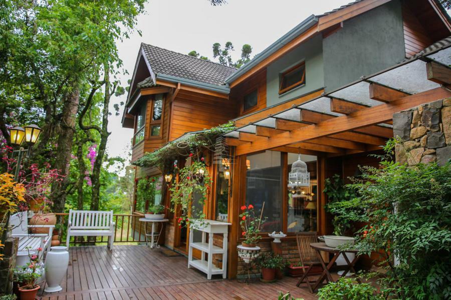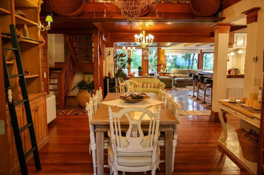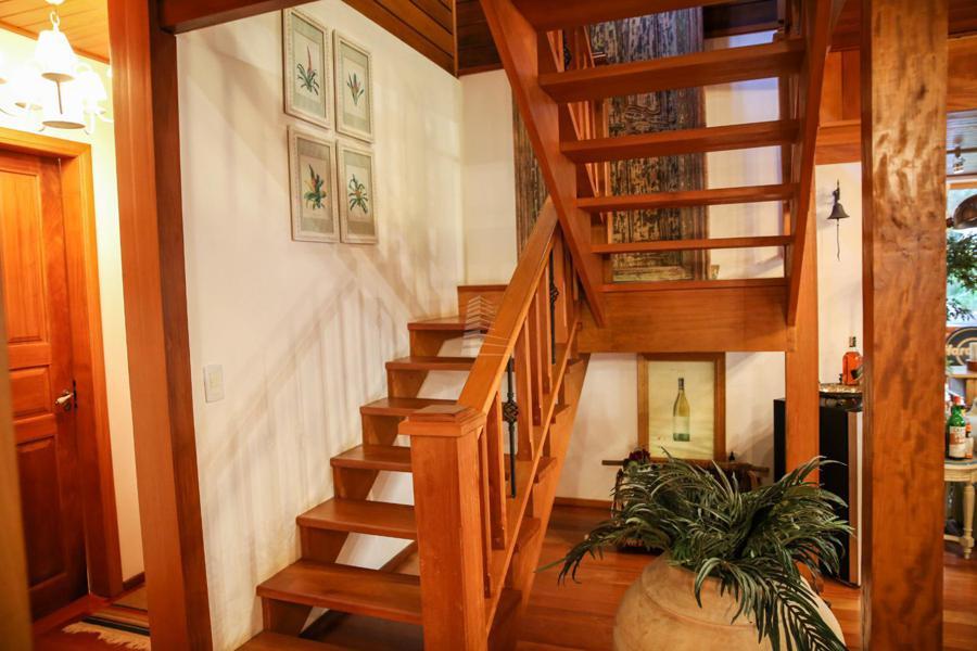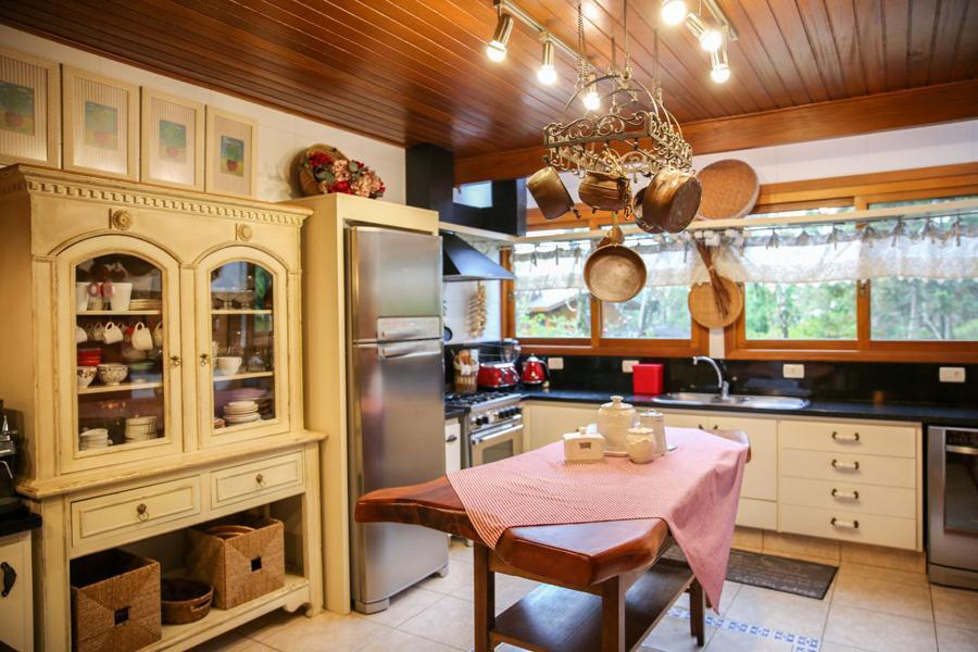 Composta em 3 pavimentos distribuída em um espaço maravilhoso de 368 metros construídos, constituída de ampla sala com vários ambientes, cozinha com mesa, lareira na sala, e no quarto de casal sendo 1 suíte com vestir e lareira e 2 suítes americanas possui um mezanino, área de serviço, área de depósito, escritório, amplo deck, casa de maquinas, a casa é 100% mobiliada com móveis de alto padrão, terreno tem 800 metros mas olha o interessante a casa possui ao seu redor 2400 metros de área de preservação permanente que não pode ser construído ou seja sua família vai ter a privacidade necessária para vivenciar os melhores momentos vendo uma vista fantástica.